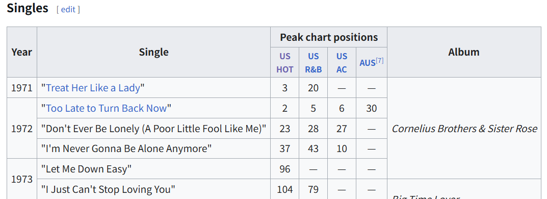 ◆ちなみにコーネリアス・ブラザース&シスター・ローズの全米Top40ヒッツは計4曲。