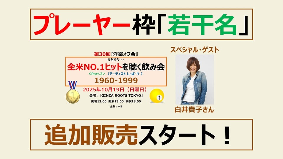 今回の記念すべき「第30回」そして「全米No.1」を聴くオフ会にあたって、僕はやっぱり「この時代を彩るような名曲」は自分がかけなくても聴きたい…と思いました。