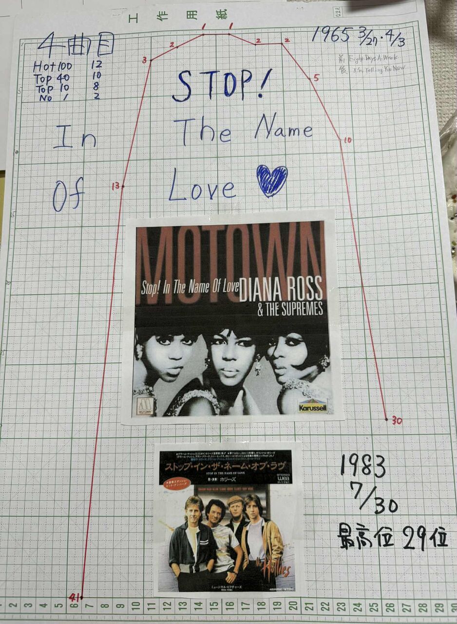 ◆「オフ会レポート」にも書いているのですが、シュープリームスにはなんと12曲もの全米No.1ヒットがあり、今回取り上げた“Stop!In the Name Of Love”はその4曲め。