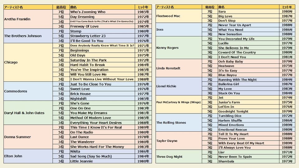 70年代&80年代限定で、全米ヒット・チャート最高位「7位」「5位」「3位」を持つアーティスト、グループをピック・アップしたら・・・。