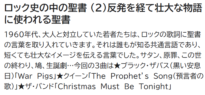 12月のテーマは「ロック史の中の聖書」。翻訳家の朝日順子さんの解説です。