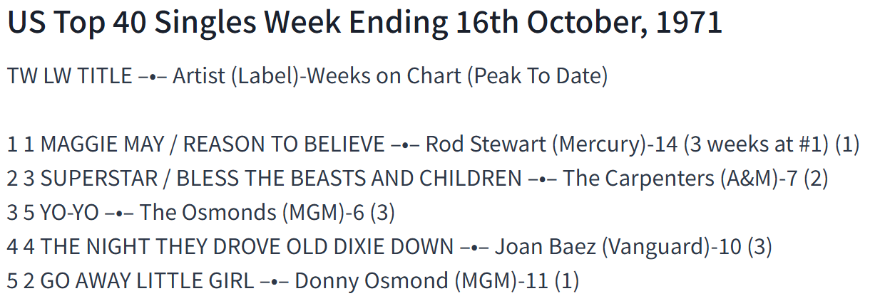 Released in 1971US Billboard Hot100 ♯67